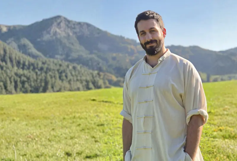 Il suo percorso nelle arti marziali inizia all’età di cinque anni con gli insegnamenti di karate ricevuti dal padre. A 19 anni, il suo primo viaggio in Cina segna l’inizio di una profonda immersione nella tradizione taoista, studiando presso diverse accademie prima di incontrare il suo maestro ai Cinque Immortali.